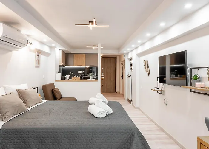 Een koelkast, een oven en een kookplaat zijn beschikbaar in een keuken. KTEL Station Terminal of Larisa bushalte is op een korte afstand van 1-slaapkamer Ευ. Central Studio gelegen. Gasten worden uitgenodigd om zich op een terras te ontspannen.